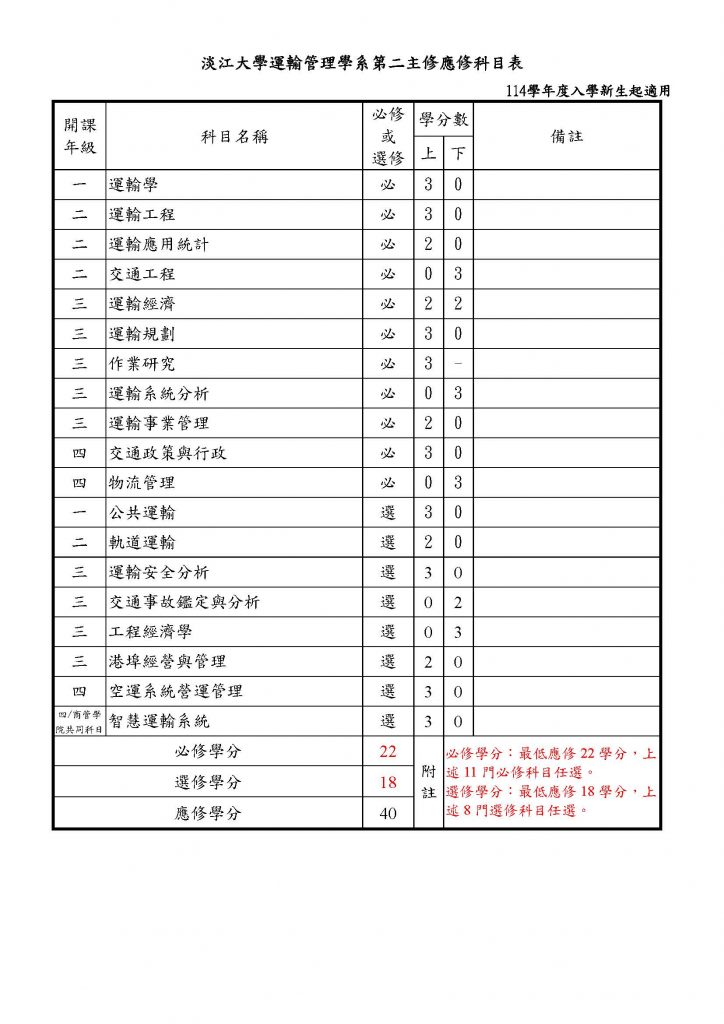 輔修 | 輔修:XXX (領域名稱) 如:輔修:運輸管理 |